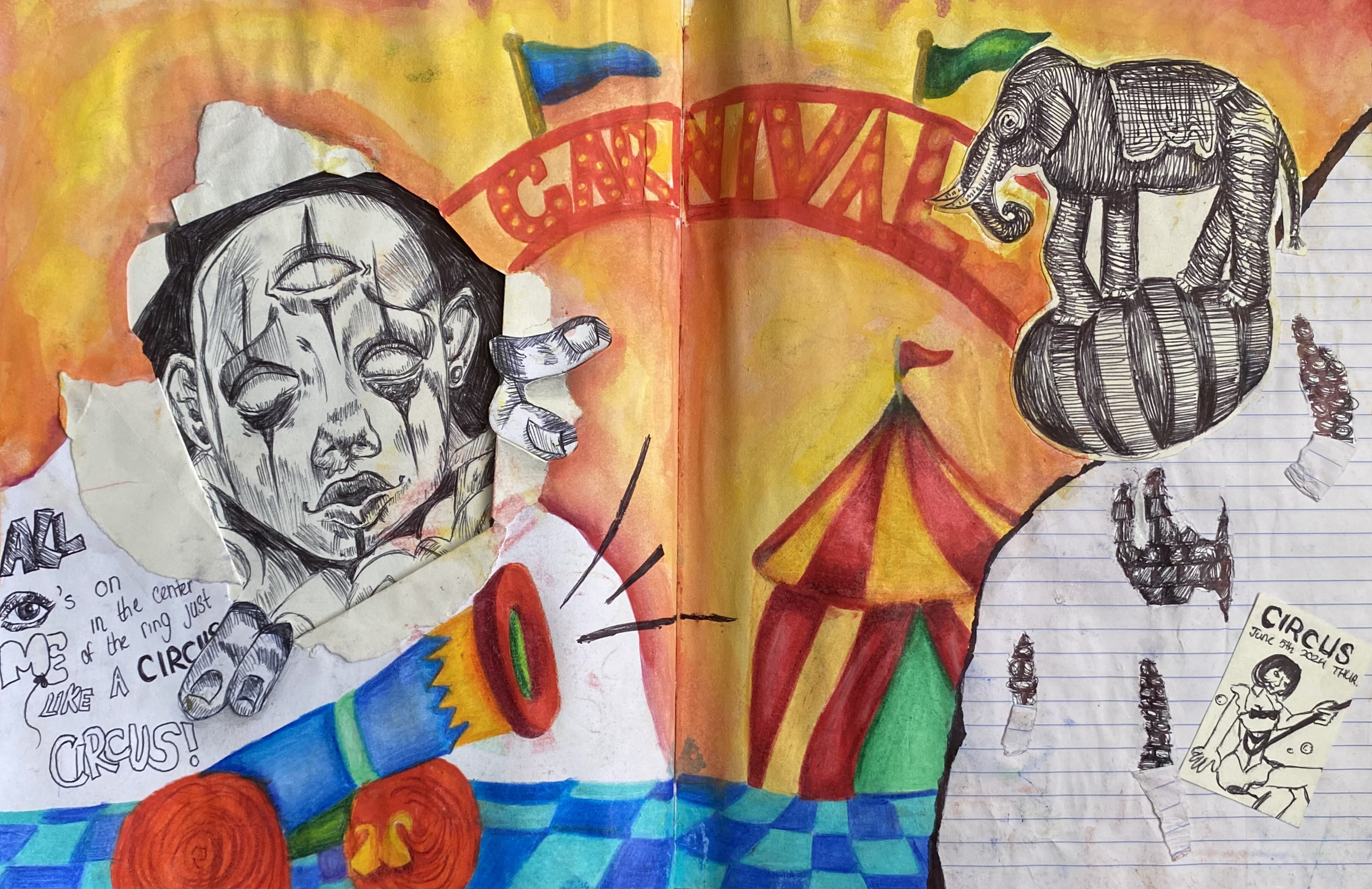 I made this in High School. I wanted to try an interactive sketchbook page where the perseon pops out from a previous page.