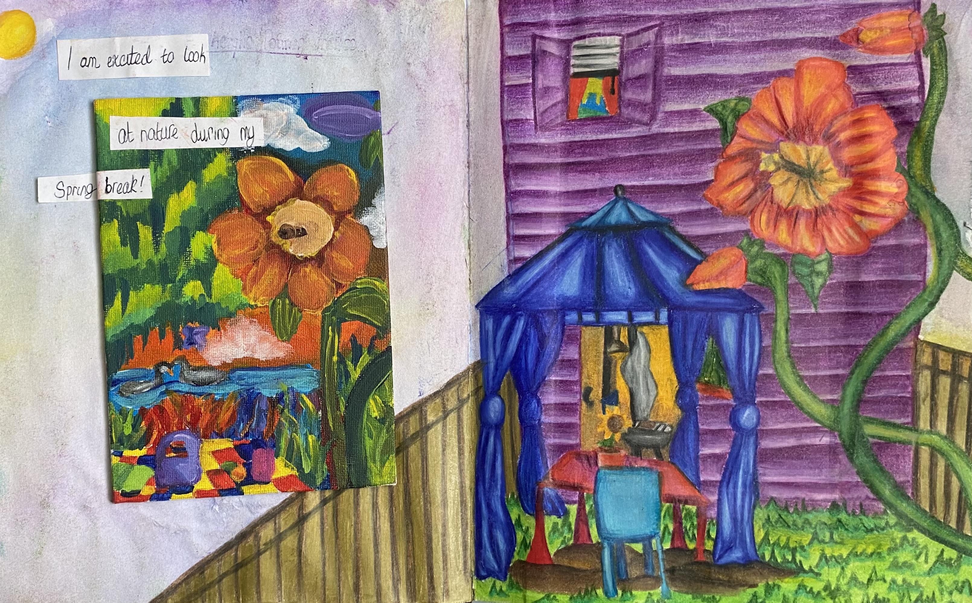 I made this in high school too! The left side has a mini painting and the right is a drawing.