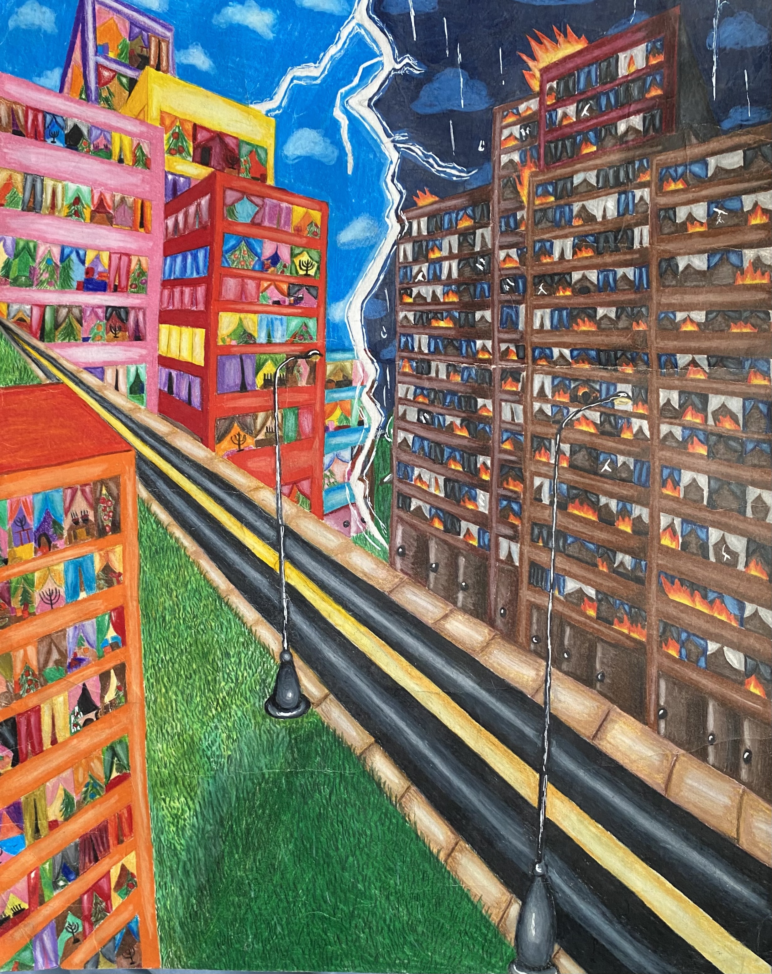 This is a pen and ink piece. I mainly used stippling which took forever! But it was worth it for a good grade.