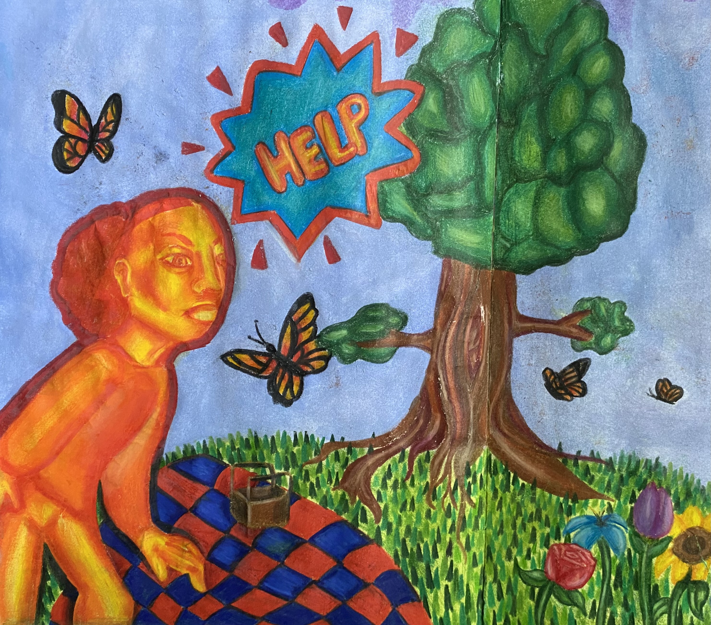 My teacher told me to draw myself with my spririt animal. I didn't know what it was so I took a test and got a butterfly. I just thought "if I were to be attacked by butterflies I'd scream for help." So I drew that lol.